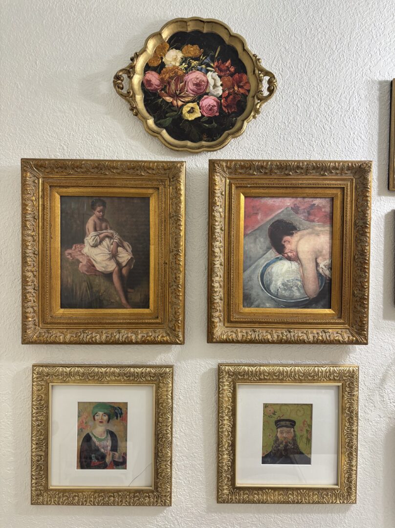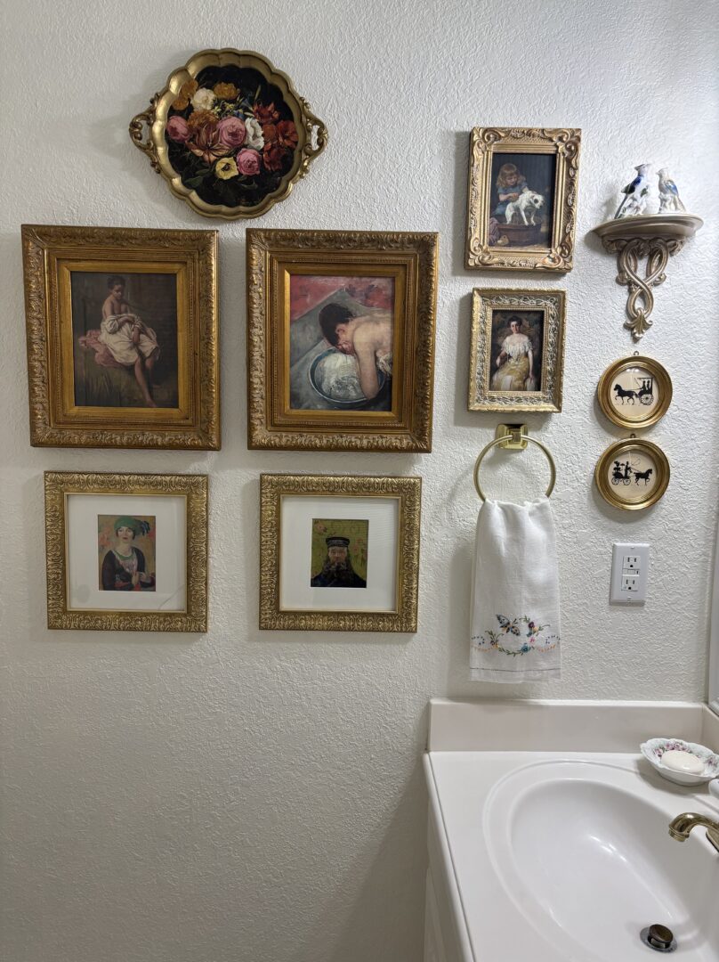 Whenever I visit an art museum I often buy a print or postcard to bring home with me. These pretty prints were displayed in frames that I have collected over the years from estate sales and thrift shops.